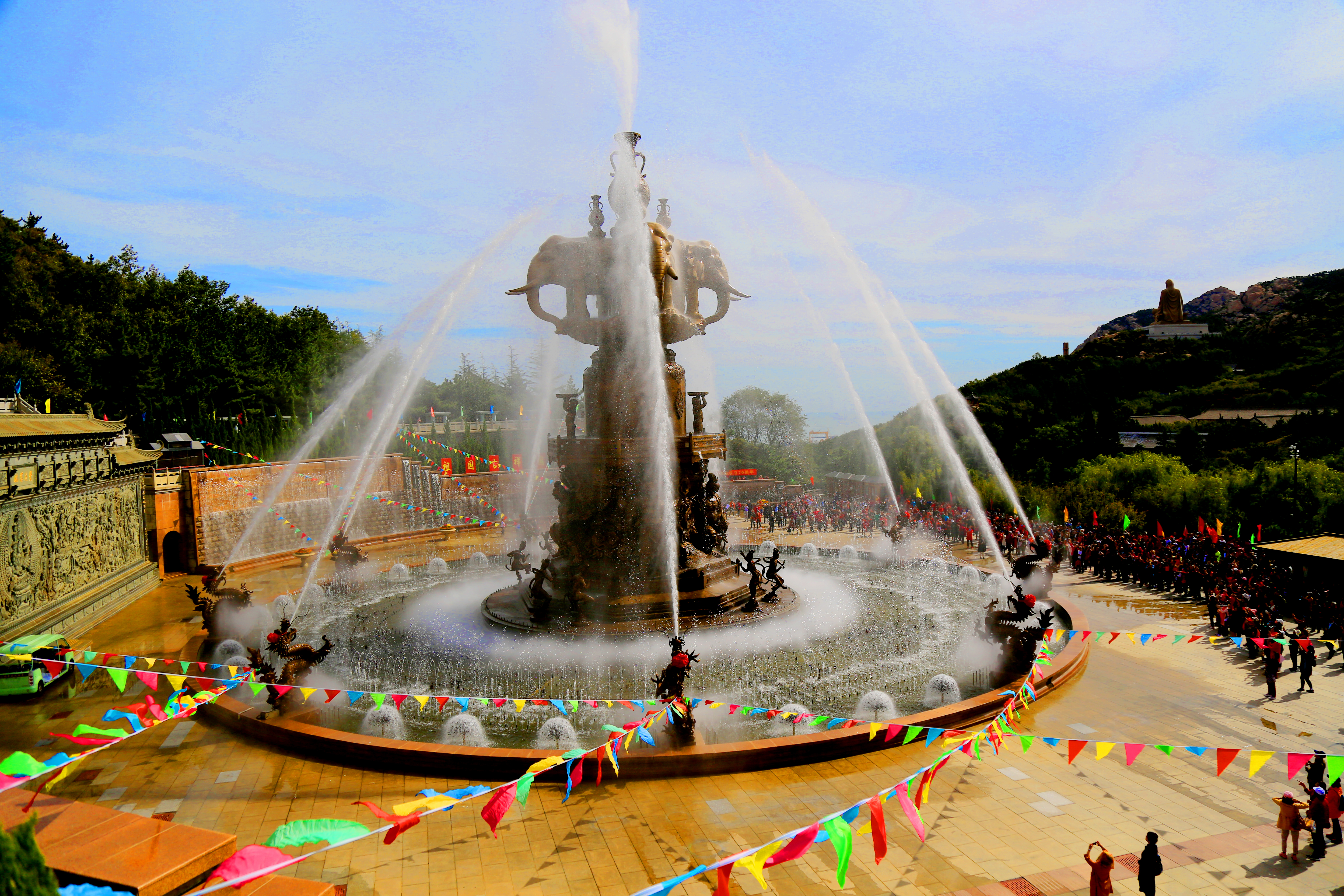 景区内各大景观交相辉映,美不胜收,拥有胶东著名寺院千年古刹——赤山法华院;以吉祥平安为主题的大型动感音乐喷泉——吉祥平安谷;高58.8米的海神像——赤山大明神;供奉大慈大悲、救苦救难的观音菩萨——观音坛;韩国海上王张保皋大使的纪念地——张保皋传记馆;中国北方民俗文化博览园——荣成赤山民俗博物馆;日本天台宗第三代座主圆仁法师的纪念地——赤山禅院;新晋网红赏花胜地——百花园等,是滨海风情游、山海景观游、渔业民俗游、宗教朝圣游的世外桃源。