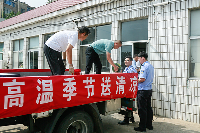 8月15日上午,赤山集团组织开展送清凉活动,为石岛管理区园林、环卫、交警这些单位高温下坚持工作的一线工作者送去西瓜和矿泉水等解暑物资,对他们的辛勤付出表示感谢和慰问。